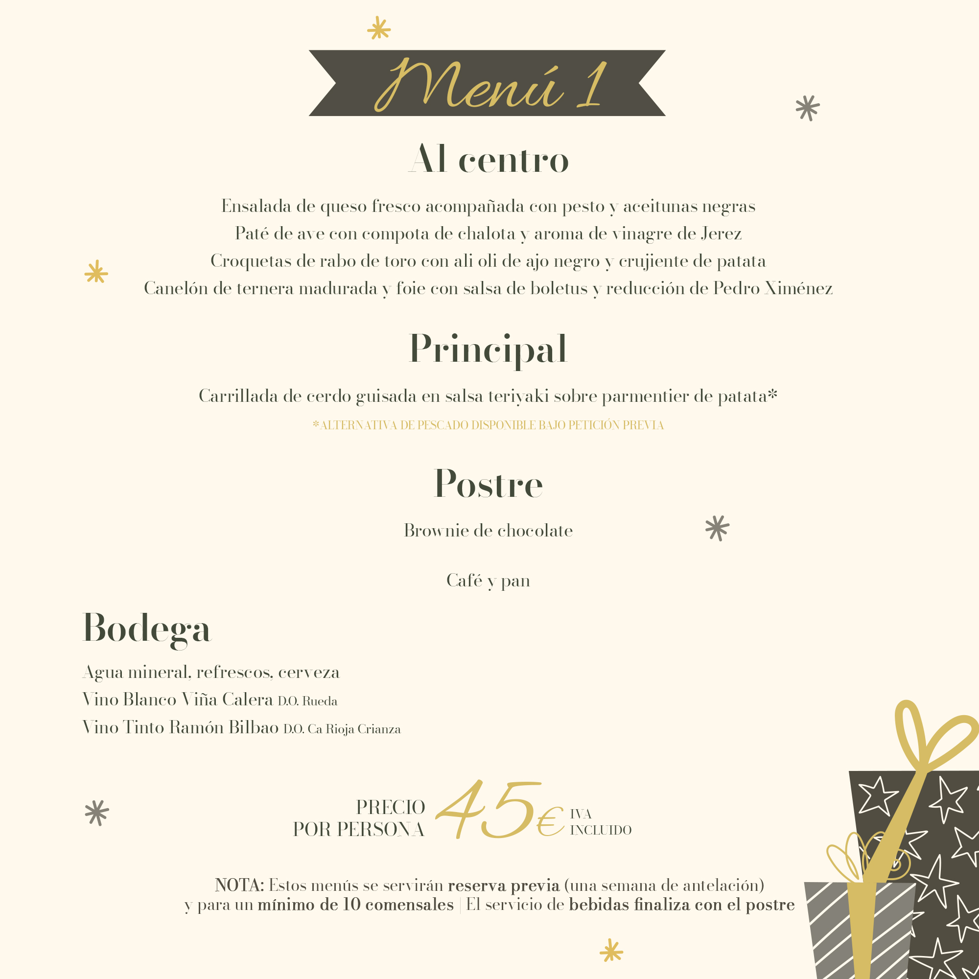 Escoge el menú que más se ajuste a tus necesidades y nosotros haremos que el resto de la velada sea perfecta.